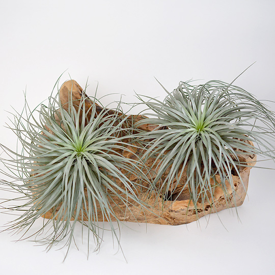 土を必要としないティランジアはその楽しみ方も鉢植えとはまた違い、天井から吊るしたり、発根したら流木に活着させたり、土で汚したくないキッチンなどの側に置いたりして楽しむことが出来ます。