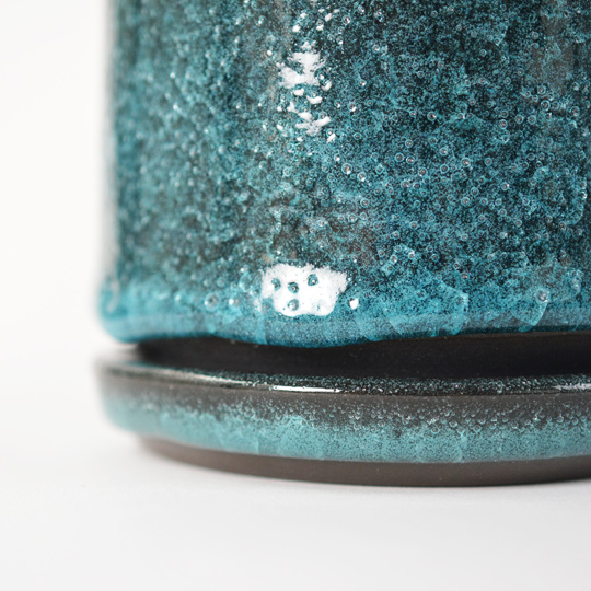 可愛らしいぽってりとしたフォルム、そしてアイスブルーの氷裂貫入釉。