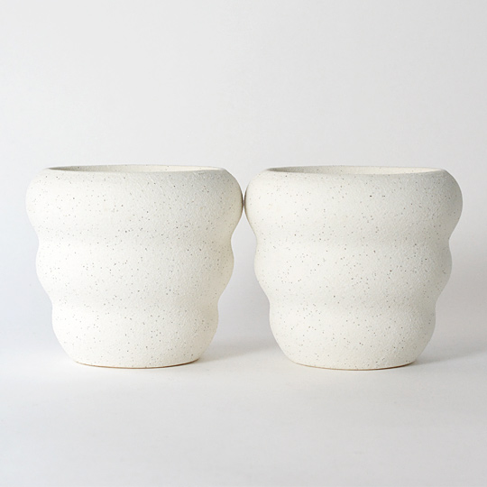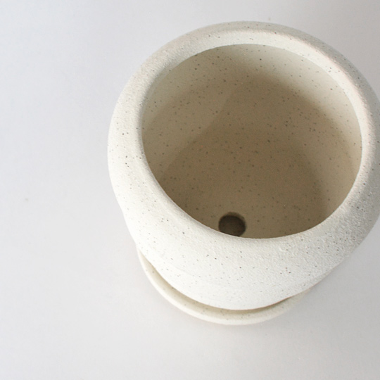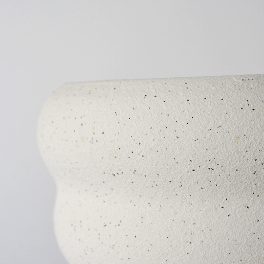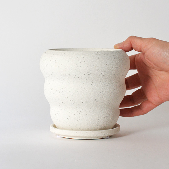 柔らかな曲線のフォルムに、黒い粒が混じったマットホワイトの色合いはグリーンの美しさをより引き立たせてくれそうです。