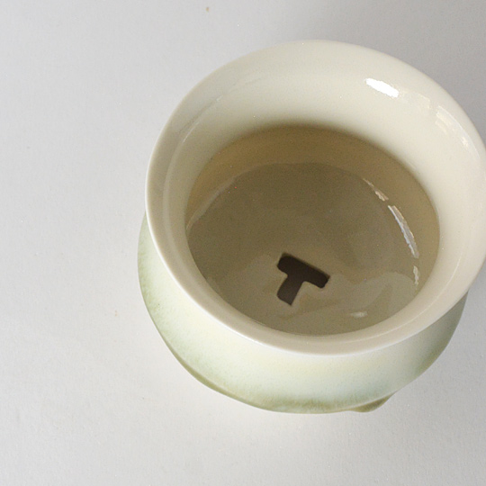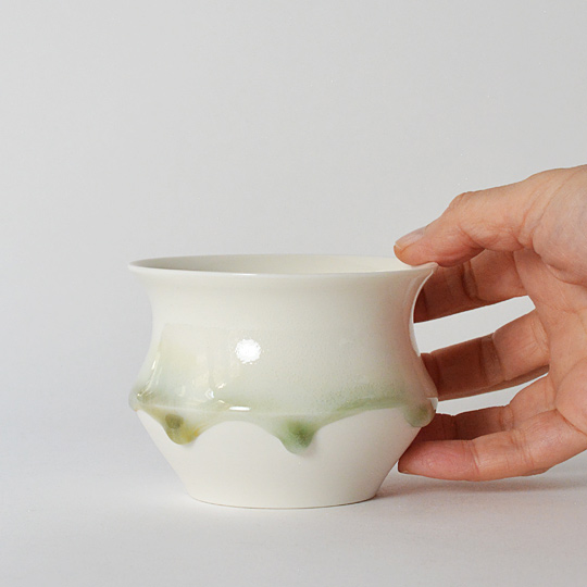 トロンとした釉薬は、水の揺らぎをイメージしており、水の雫が光をふくみ色めきつつ落ちる様がもととなってます。
