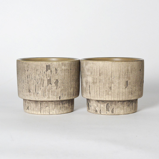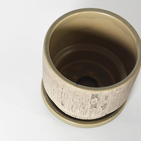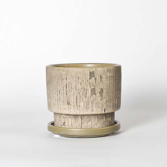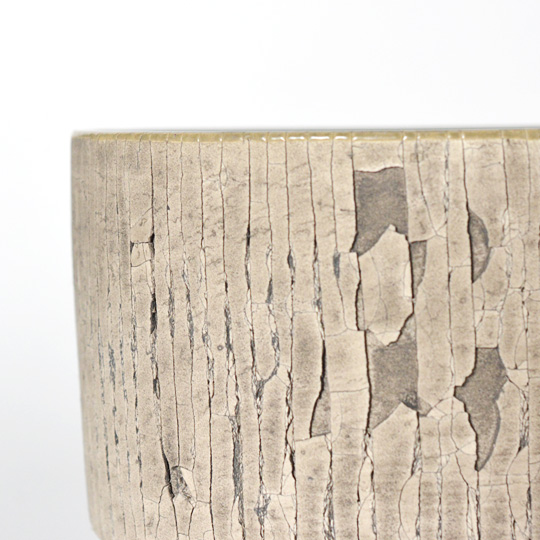 縦方向だけに切れるの入る不思議なテクスチャの鉢です。