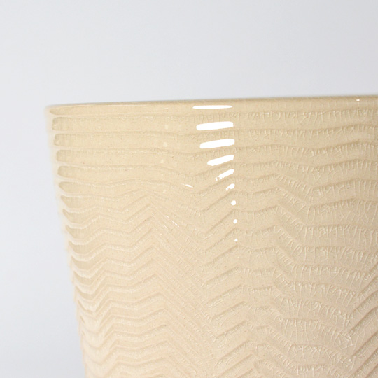 ベースとなる色はホワイトよりもアイボリーに近い色合い。その上に艶のある釉薬が施されていて、細かな貫入と艶感があることで洗練された印象を与えます。