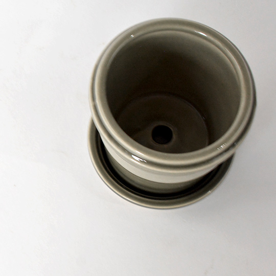 シンプルな形状と落ち着いた色合いで、植物の美しさを引き立たせてくれそうな鉢です。
