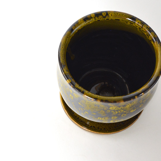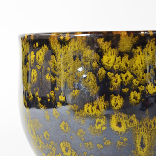 腰部分に膨らみのある柔らかなフォルムに艶感のあるツルッとした釉薬が施されているので、ワイルドさと上品さがミックスされた雰囲気のあるデザイン。