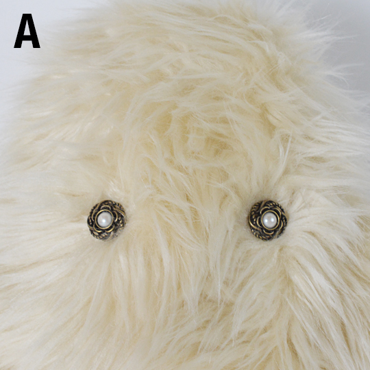 目はアンティークのボタンが使われており、こちらは任意でお選びいただけます。